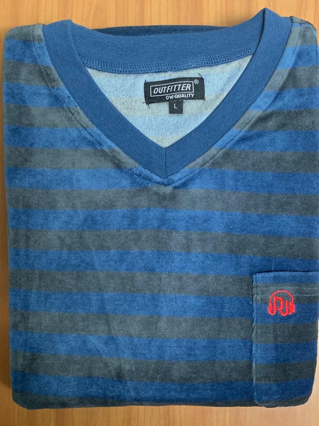 heren pyjama in een mooie zachte badstof velours kwaliteit. 75% katoen en 25% polyester. Jasje streep dessin met kleine V hals en borstzakje. Met elastische boorden afgewerkt.